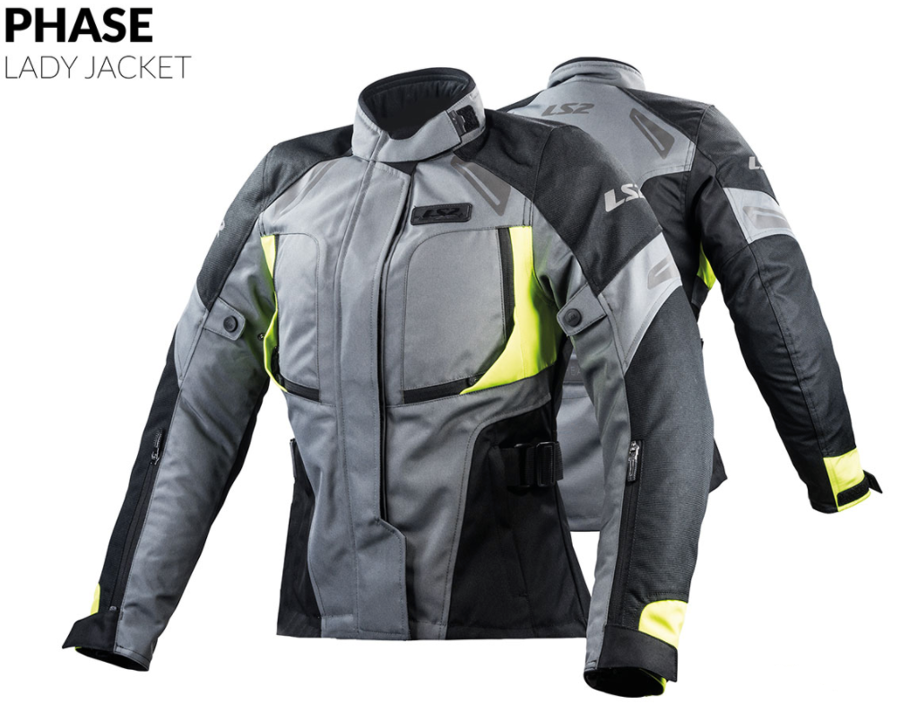 Giacca moto DONNA 4-Stagioni Ls2 PHASE - tessuto CE grigio/giallo/nero