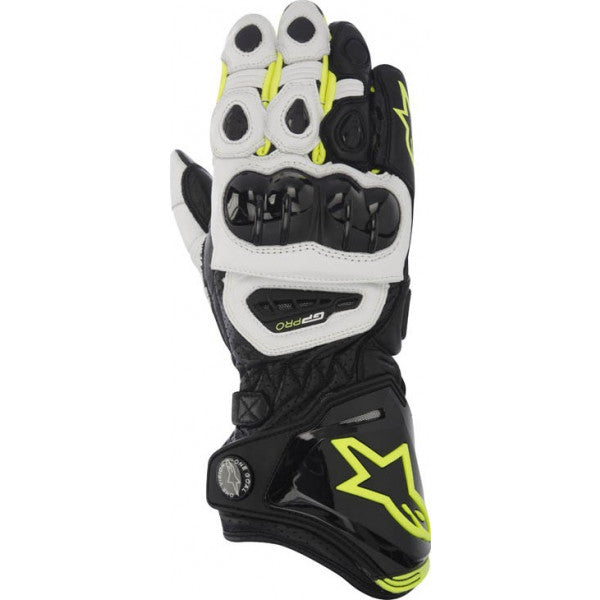 Gants de moto en cuir sport Alpinestars GP PRO - Noir/Blanc/Jaune